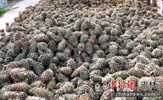 在這豐收的季節(jié)里,除了金黃的田野,山林間也迎來(lái)了另一番收獲的景象——打松塔。走進(jìn)延吉市三道灣鎮(zhèn)平崗村李永軍的院子,院子里鋪滿(mǎn)了剛打下來(lái)的松塔,空氣中彌漫著淡淡的松香。綠油油、飽滿(mǎn)壯實(shí)的松塔像一顆顆沉甸甸的小寶石,閃爍著秋日的光澤,也映照出一年辛勤勞作的成果。