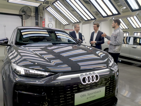 楊海介紹,在各級政府和股東的支持下,僅用了15個月,就在一片荒地上建起了智能生態(tài)工廠!霸谥悄苌a(chǎn)方面,拿焊接工藝來說,我們實(shí)現(xiàn)了100%自動化率,整車4000多個焊點(diǎn)全是由機(jī)器人完成的。在生態(tài)可持續(xù)方面,我們通過100%規(guī)劃和使用綠色能源、生產(chǎn)廢棄物100%回收、廢水100%循環(huán)使用等多項(xiàng)措施,打造了奧迪在中國首個PPE純電動車型和首家投產(chǎn)即實(shí)現(xiàn)‘碳中和’的生產(chǎn)基地。”