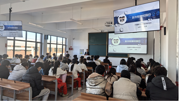 活動現(xiàn)場,臨河街支行的工作人員結(jié)合高校校園詐騙的高發(fā)特點,以通俗易懂的語言為師生們帶來了一場干貨十足的反詐宣講。宣講環(huán)節(jié)中,工作人員首先從“什么是電信網(wǎng)絡(luò)詐騙”切入,系統(tǒng)講解了電信網(wǎng)絡(luò)詐騙的定義、常見類型及隱蔽性、迷惑性特點,讓師生們對這類違法犯罪行為建立起清晰認知。隨后,通過“以案說詐”的形式,工作人員選取了近年來高發(fā)的校園貸、刷單返利、冒充老師同學借錢、虛假購物退款等典型詐騙案例,深入剖析了詐騙分子的作案手法、話術(shù)陷阱以及受害者的受騙心理,用真實案例敲響安全警鐘,讓師生們直觀感受詐騙的危害性。