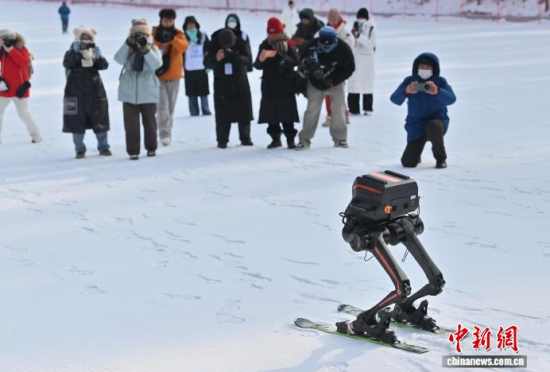 1月10日,吉林長春,一機器人在滑雪。 張瑤 攝