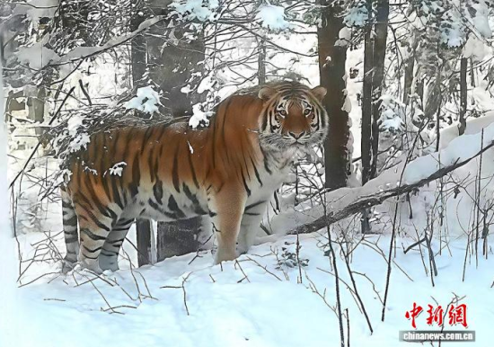 2024年12月3日,長白山保護(hù)區(qū)工作人員發(fā)現(xiàn)的野生東北虎,拍攝時與老虎距離不到10米。(資料圖)(吉林省林業(yè)和草原局供圖)
