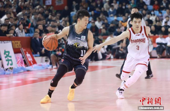 3月15日晚,吉林長(zhǎng)春,吉林隊(duì)姜偉澤(左一)持球進(jìn)攻!≈行律缬浾 張瑤 攝