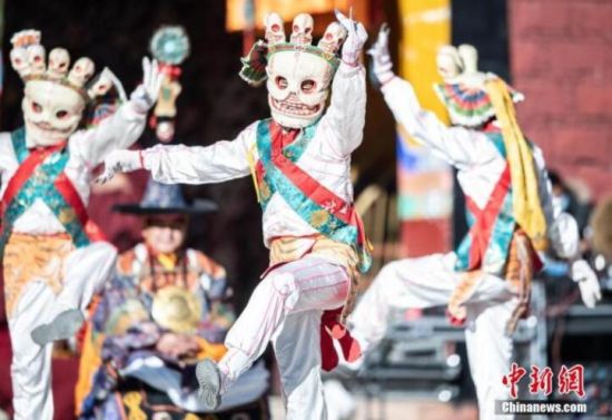 2月19日,西藏楚布寺“羌姆”表演現(xiàn)場(chǎng)。當(dāng)日,是藏歷十二月二十九日,西藏楚布寺舉行“羌姆”表演迎藏歷新年。 中新社記者 貢嘎來(lái)松 攝