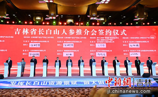 推介會(huì)上,與會(huì)人員共同觀看了長(zhǎng)白山人參專題宣傳片。通化市委書記孫簡(jiǎn),白山市委書記、長(zhǎng)白山保護(hù)開發(fā)區(qū)黨工委書記謝忠?guī)r,延邊州委副書記馮濤,分別推介人參產(chǎn)業(yè)發(fā)展情況;中國(guó)民族貿(mào)易促進(jìn)會(huì)以及吉林華瑞參業(yè)有限公司等企業(yè)代表分別發(fā)言;進(jìn)行了項(xiàng)目集中簽約。