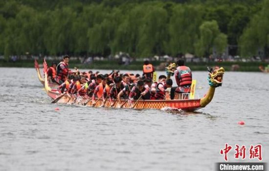中新網(wǎng)長(zhǎng)春6月22日電 (記者 郭佳)22日是中國(guó)傳統(tǒng)節(jié)日端午節(jié),吉林省第一屆全國(guó)龍舟邀請(qǐng)賽在長(zhǎng)春伊通河舉辦,吸引來自吉林、安徽、廣東、河北等地的16支隊(duì)伍、約300人揮槳逐浪,奮勇爭(zhēng)先。