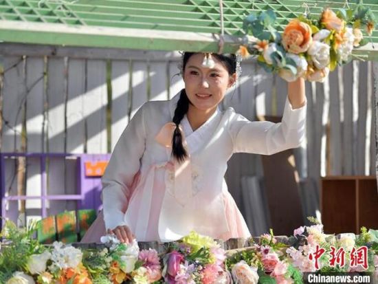 11月4日,在吉林省延邊朝鮮族自治州延吉市的中國朝鮮族民俗園內(nèi),游客身著朝鮮族服飾拍照留念。延邊是中國最大的朝鮮族聚居區(qū),濃郁的民族風(fēng)情吸引大量游客前來觀光體驗。