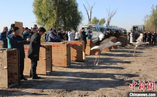 中新網(wǎng)長(zhǎng)春11月19日電 (張瑤 王萬(wàn)峰)吉林省林業(yè)和草原局19日介紹,該局近日組織野生動(dòng)物救護(hù)部門將救助的11只東方白鸛成功護(hù)送到天津七里海國(guó)家濕地公園與已遷徙至那里的種群匯合。這是吉林省第一次大規(guī)?缡∽o(hù)送“鳥(niǎo)界國(guó)寶”東方白鸛歸隊(duì)。
