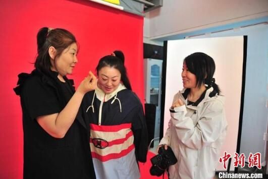 市民正在拍攝家庭照。市民正在拍攝家庭照。一對拍照的姐妹相擁而笑。攝影師在為市民設(shè)計造型。攝影師在為市民設(shè)計造型。