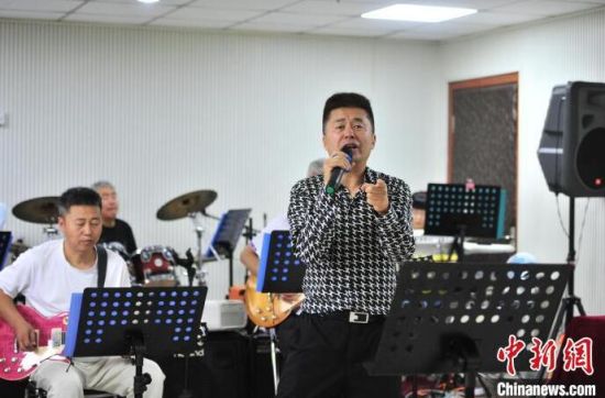 7月4日,吉林長春,火焰老年樂隊(duì)在演奏搖滾樂。這支樂隊(duì)有7名樂手和7名主唱,平均年齡62歲,是吉林省為數(shù)不多的老年搖滾樂隊(duì)。他們?cè)诩ぐ旱臉仿曋袑?shí)現(xiàn)自己的搖滾夢(mèng),尋回年輕的感覺。