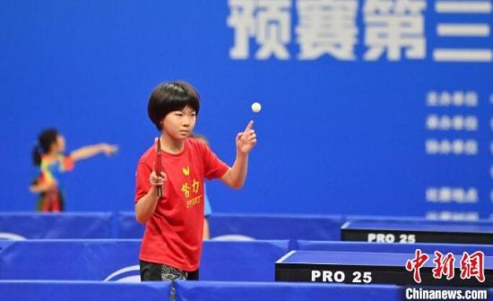 8月6日,吉林長春,選手在比賽。當(dāng)天,2024年全國少兒乒乓球錦標(biāo)賽預(yù)賽第三站(女子)在長春開賽,來自全國47個代表隊的少兒乒乓球運動員同場比拼球技。(中新社記者 張瑤 攝)
