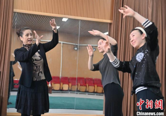 4月10日,在位于吉林省長春市的吉林省吉劇團,安靜芳(左)在為青年演員說戲。近期,中國文化和旅游部公布第六批國家級非物質(zhì)文化遺產(chǎn)代表性傳承人名單,吉劇代表性傳承人安靜芳位列其中。入行超過四十年的她,曾塑造了樊梨花、鐵扇公主等眾多經(jīng)典角色。近年來,她退居幕后潛心授藝培育新人,以匠心守護這門年輕劇種的傳承發(fā)展。中新社記者 張瑤 攝