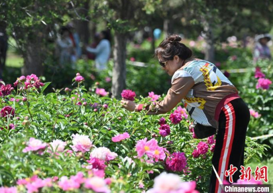 6月11日,在長春市長春公園內,六萬余株芍藥花競相綻放,吸引了眾多游客前來觀賞。中新社記者 張瑤 攝