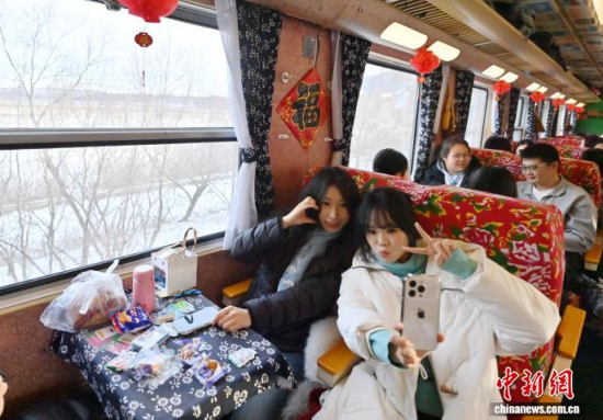 12月3日,直達長白山的龍井民俗旅游專列鳴笛啟程,開啟冬日樂賞冰雪之旅。該專列融合“冰雪+民俗”雙重主題,每節(jié)車廂各成一道風景,絢麗多彩的民俗風情貫穿全程。車窗外,壯美的林海雪原不斷掠過,吸引游客觀賞。據(jù)悉,該專列將在每周末往返兩地。中新社記者 張瑤 攝