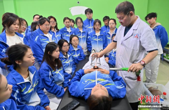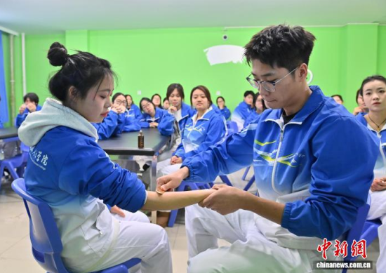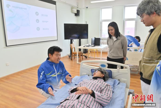 12月15日,在長(zhǎng)春人文學(xué)院,學(xué)生在實(shí)操介護(hù)技術(shù)。面對(duì)老齡化進(jìn)程與銀發(fā)經(jīng)濟(jì)發(fā)展,該校開設(shè)了養(yǎng)老服務(wù)管理專業(yè),融合管理學(xué)、心理學(xué)、護(hù)理學(xué)等,設(shè)置介護(hù)福祉綜合實(shí)訓(xùn)、老年康樂活動(dòng)策劃與實(shí)施綜合實(shí)訓(xùn)、智慧養(yǎng)老實(shí)務(wù)等近30門課程,培養(yǎng)既懂運(yùn)營(yíng)管理又具備實(shí)操技能的復(fù)合型人才,吸引年輕人投身這一“朝陽產(chǎn)業(yè)”。中新社記者 張瑤 攝