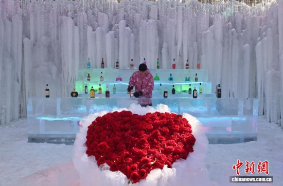 2月3日,位于長春冰川幻境冰雪樂園內(nèi)的一座由冰瀑打造而成的特色“酒吧”,吸引了大量游客前來打卡體驗(yàn)。酒吧內(nèi)部以冰雪為主題,晶瑩剔透的冰沙發(fā)與冰吧臺相互映襯,營造出夢幻般的冰雪世界氛圍。中新社記者 張瑤 攝