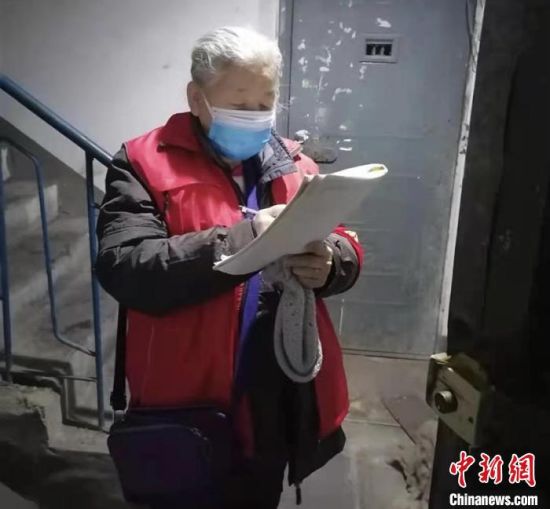 70歲高齡的孫桂賢在樓道里寫著她的“戰(zhàn)疫日記”。長春市寬城區(qū)黃河路北社區(qū)供圖