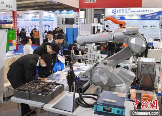 3月27日,第17屆長春先進(jìn)裝備制造業(yè)博覽會(huì)展出大量工業(yè)機(jī)器人。 中新社記者 張瑤 攝